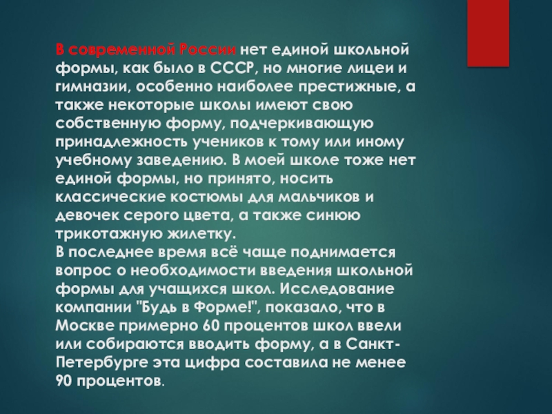 Слайд 7В современной России нет единой школьной формы, как было в СССР, но