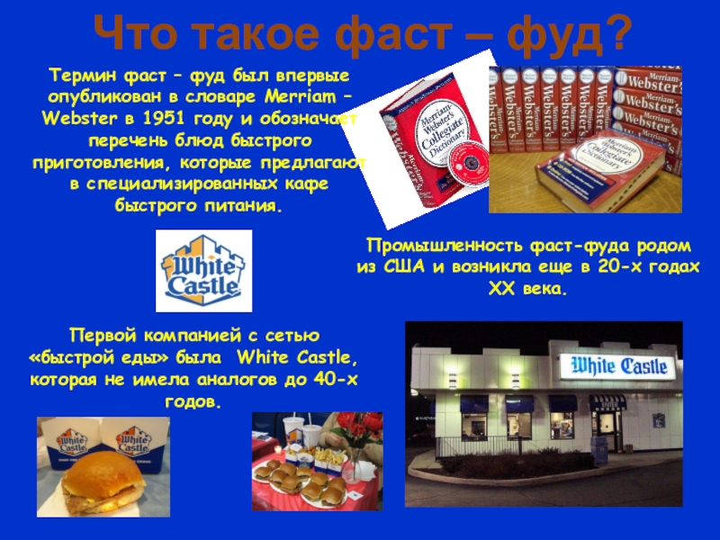 Промышленность фаст-фуда родом из США и возникла еще в 20-х годах ХХ века.