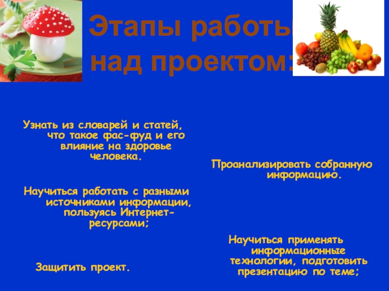 Научиться применять информационные технологии, подготовить презентацию по теме;