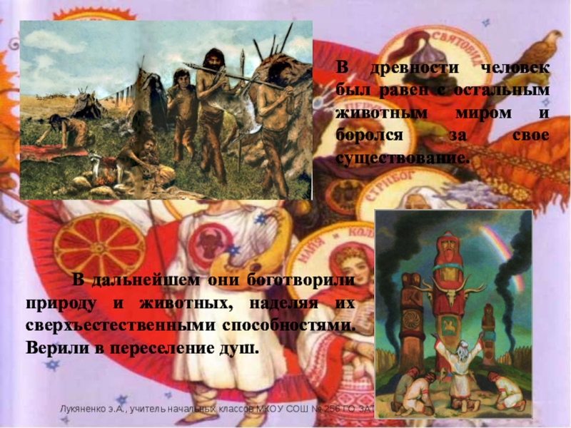 В дальнейшем они боготворили природу и животных, наделяя их сверхъестественными способностями. Верили в переселение душ.