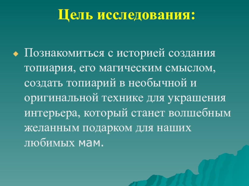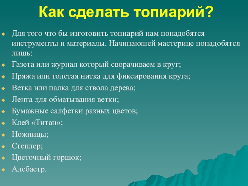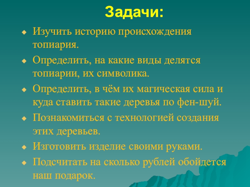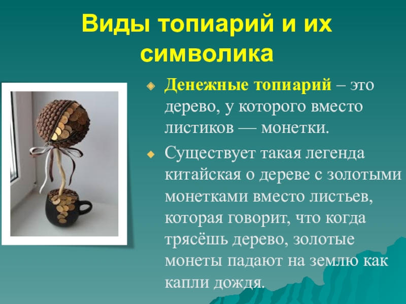 Познакомиться с историей создания топиария, его магическим смыслом, создать топиарий