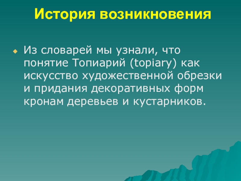 Из словарей мы узнали, что понятие Топиарий (topiary) как искусство