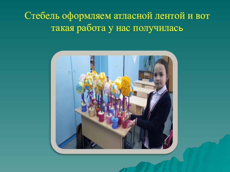 Слайд 18Стебель оформляем атласной лентой и вот такая работа у нас получилась
