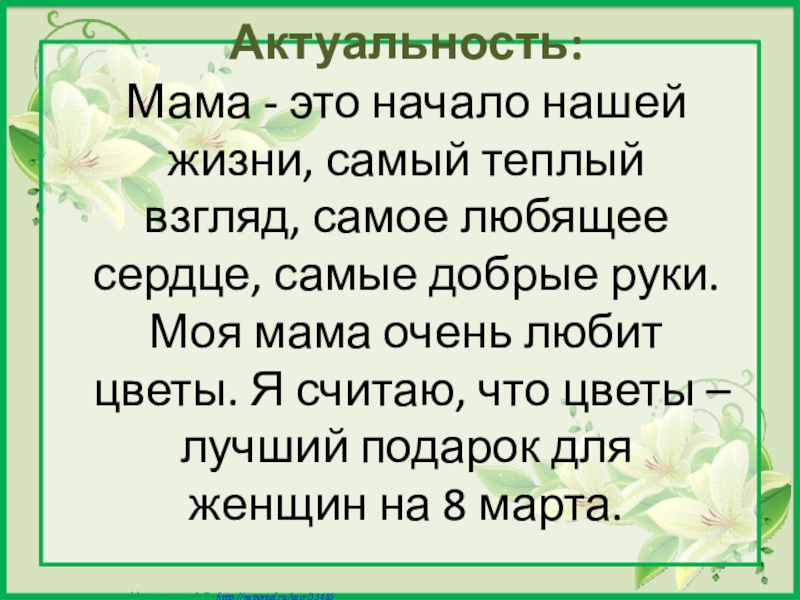 Это сайт презентаций, где можно хранить и обмениваться своими презентациями, докладами, проектами, шаблонами в формате PowerPoint с другими пользователями. Мы помогаем школьникам, студентам, учителям, преподавателям хранить и обмениваться учебными материалами.