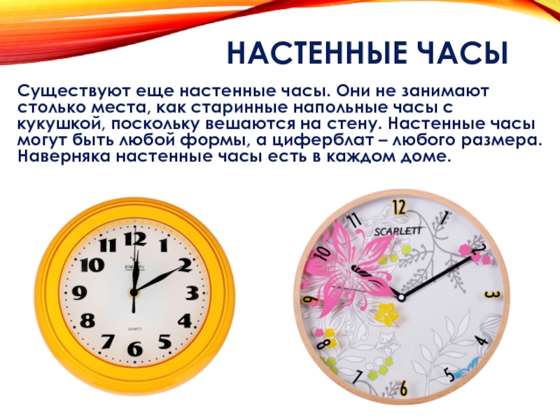 старинные напольные часы с кукушкой, поскольку вешаются на стену. Настенные часы могут быть любой формы, а циферблат – любого размера. Наверняка настенные часы есть в каждом доме.