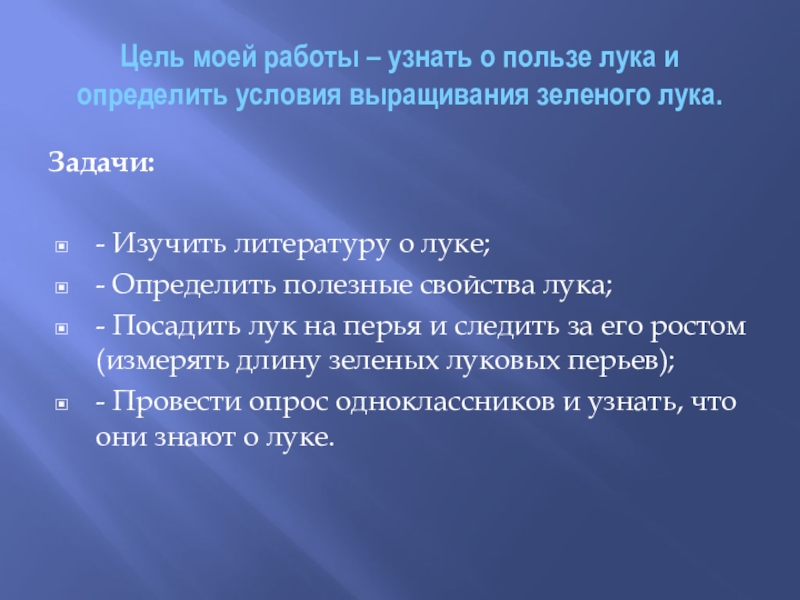 - Провести опрос одноклассников и узнать, что они знают о луке.