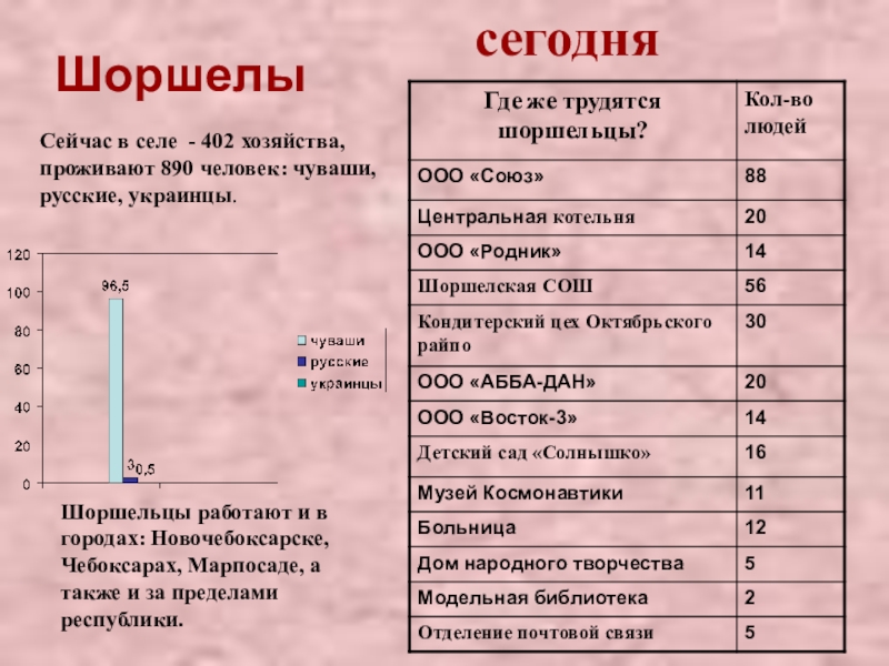 3) В Шоршелах живут чуваши, русские, украинцы;