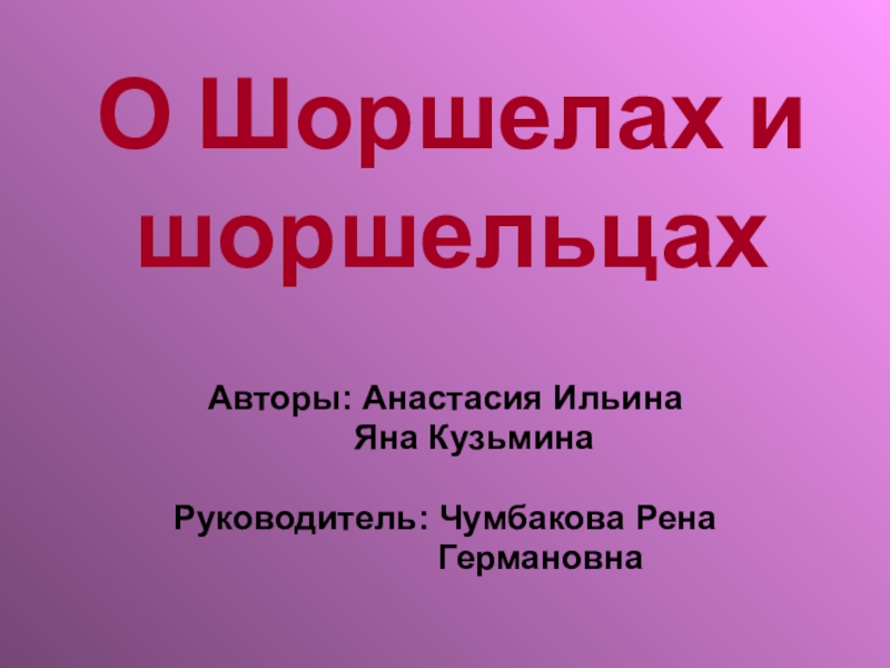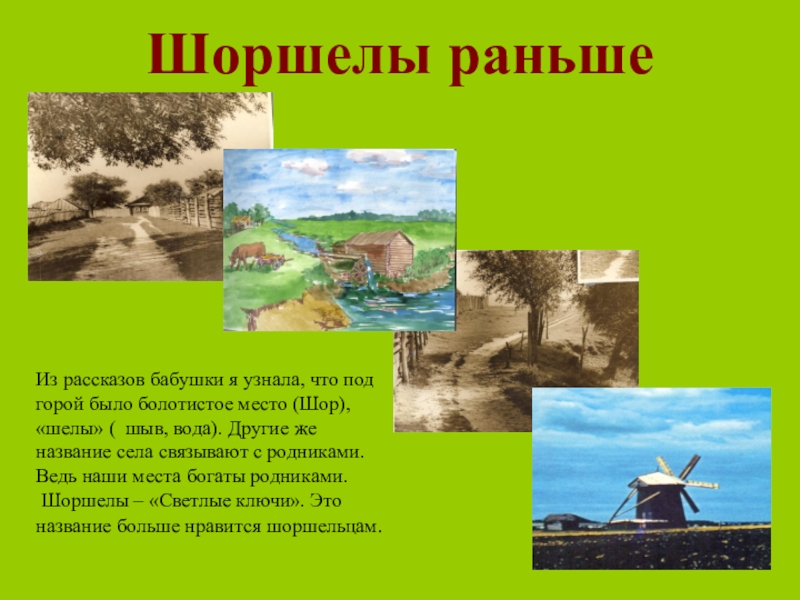 1)Шоршелы – по-чувашски «Светлые ключи»;