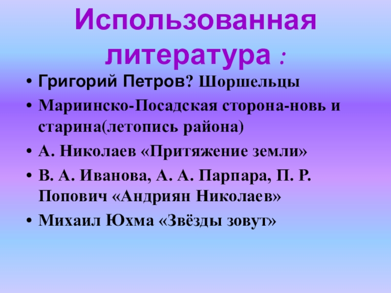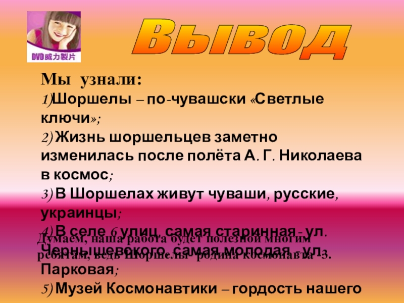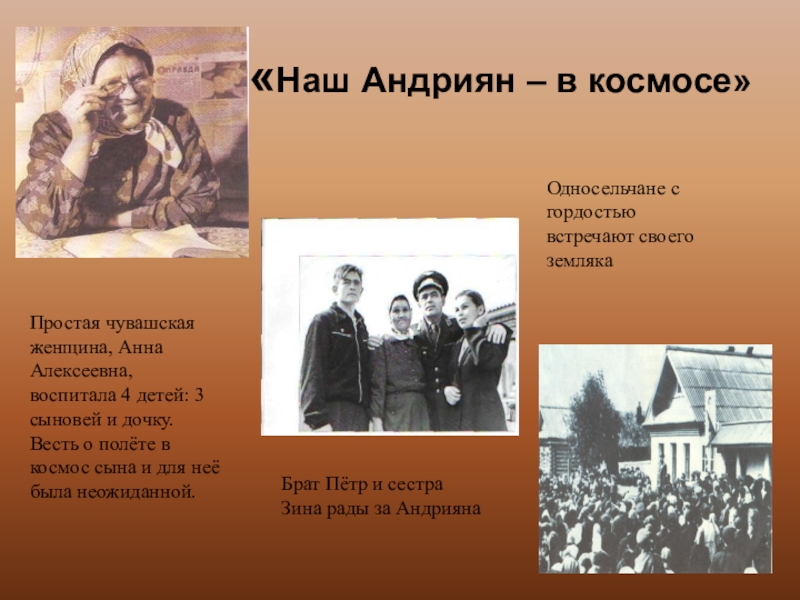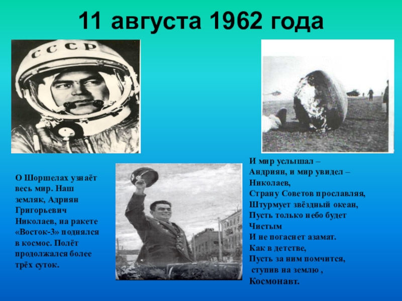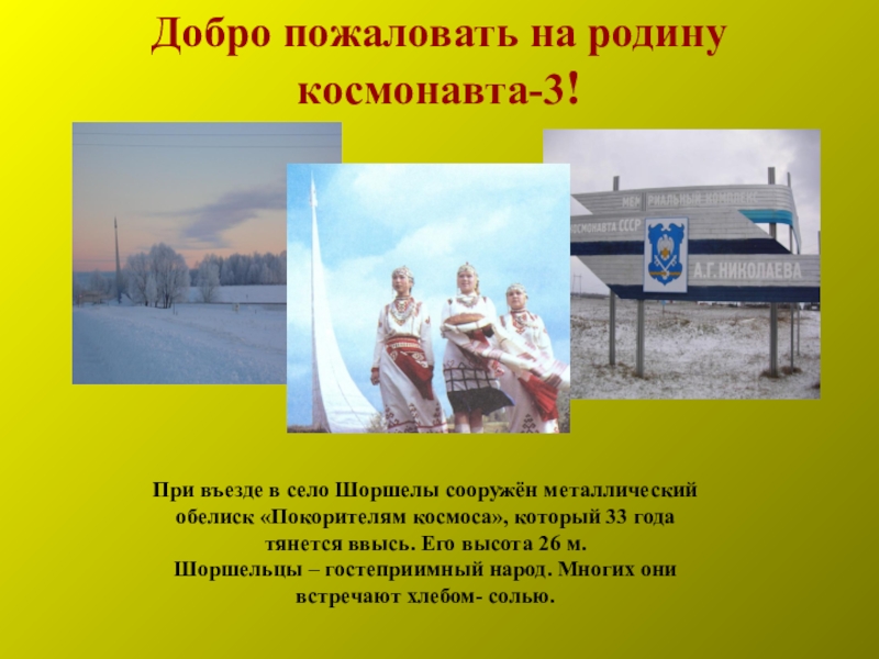 2) Жизнь шоршельцев заметно изменилась после полёта А. Г. Николаева в космос;