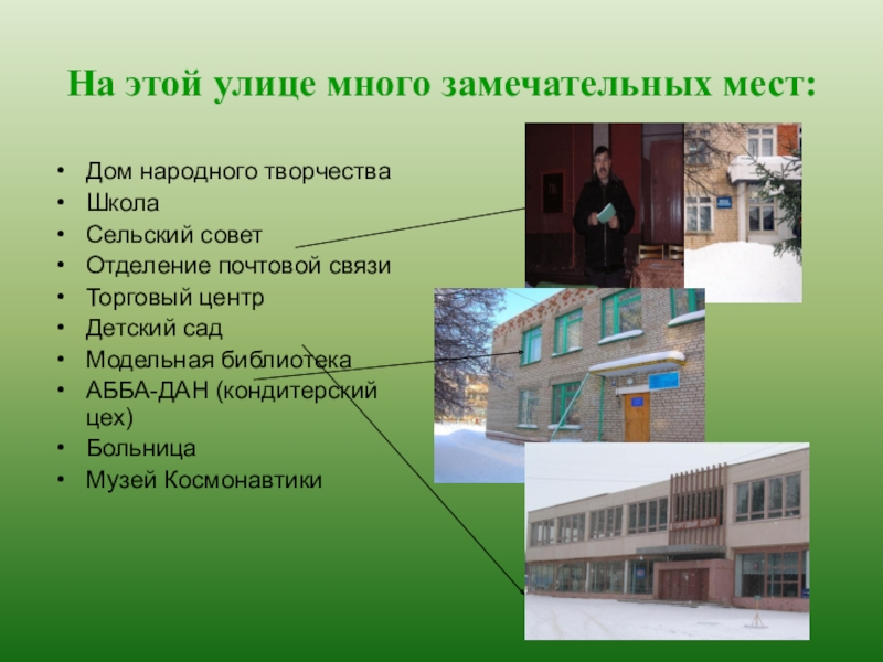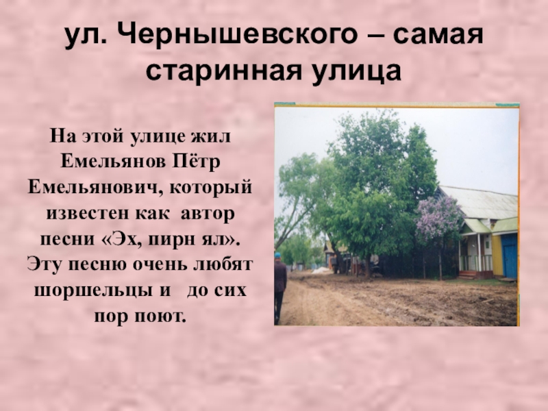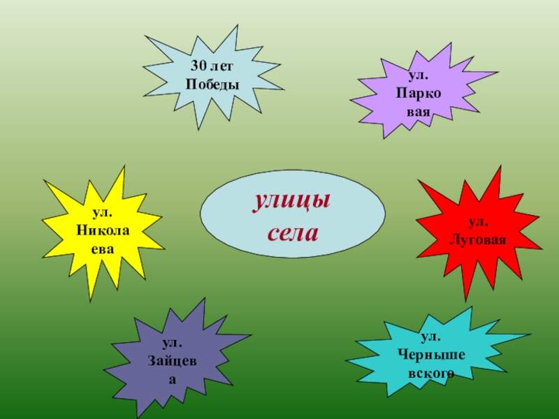 4) В селе 6 улиц, самая старинная- ул. Чернышевского, самая молодая - ул. Парковая;