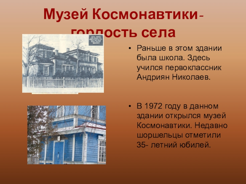 В 1972 году в данном здании открылся музей Космонавтики. Недавно шоршельцы отметили 35- летний юбилей.