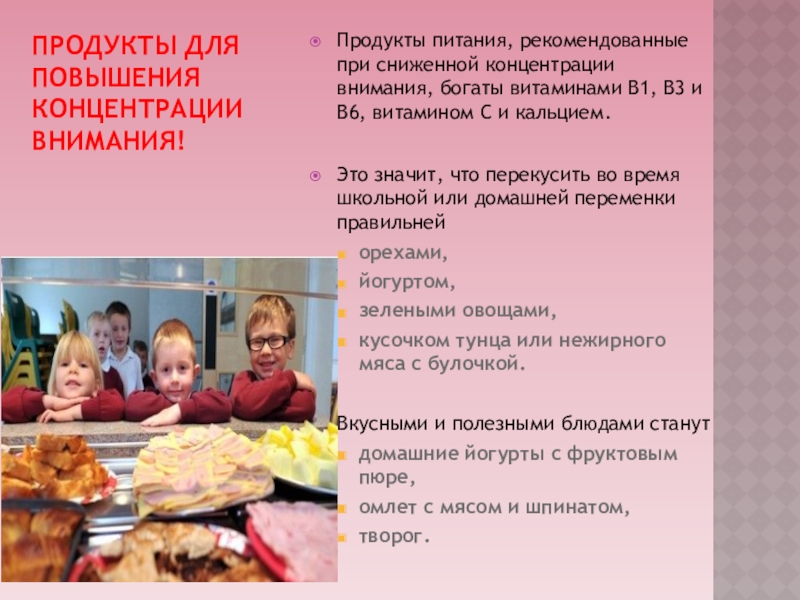 Слайд 19Продукты для повышения концентрации внимания!