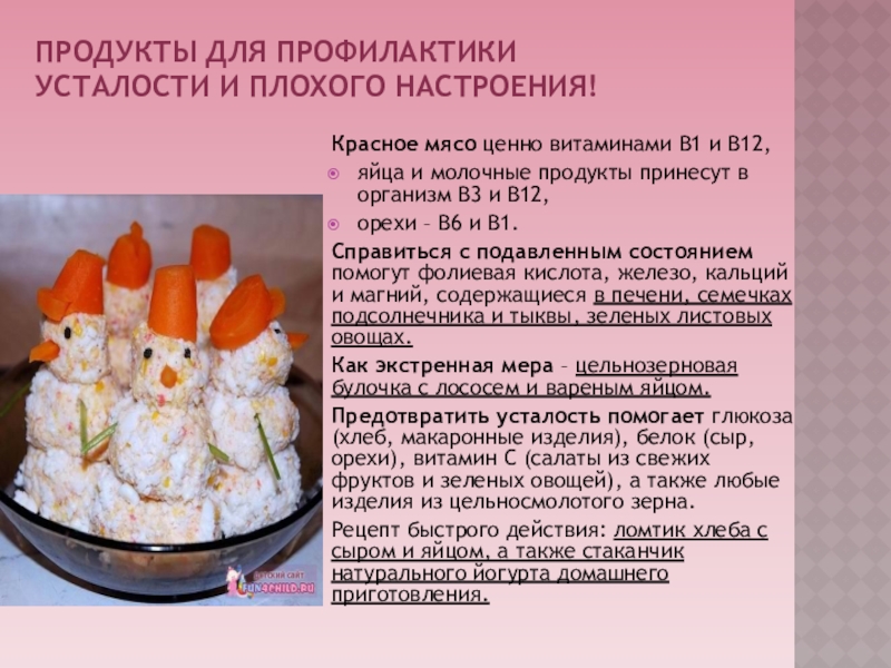 Слайд 17Продукты для профилактики усталости и плохого настроения!