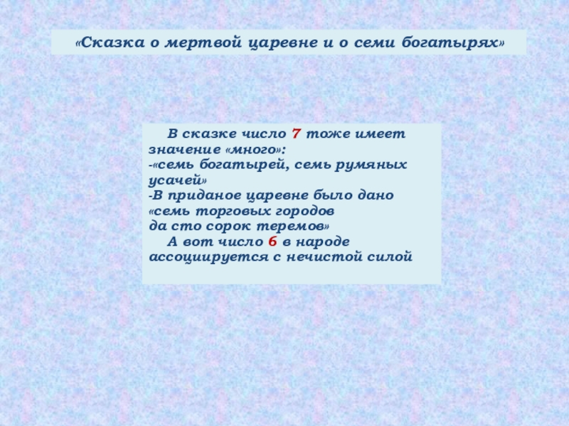 «Сказка о мертвой царевне и о семи богатырях»