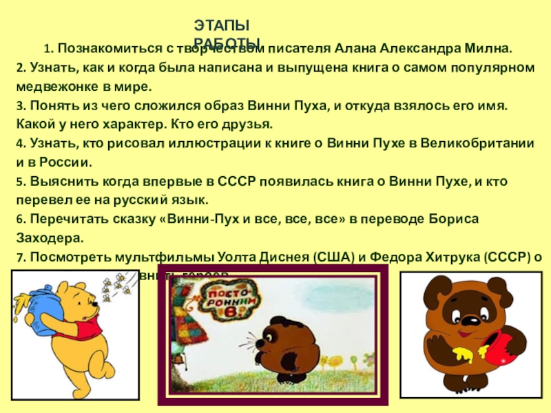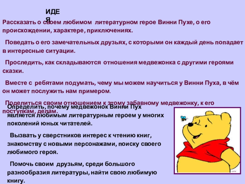 Определить, почему медвежонок Винни Пух является любимым литературным героем у многих поколений юных читателей.