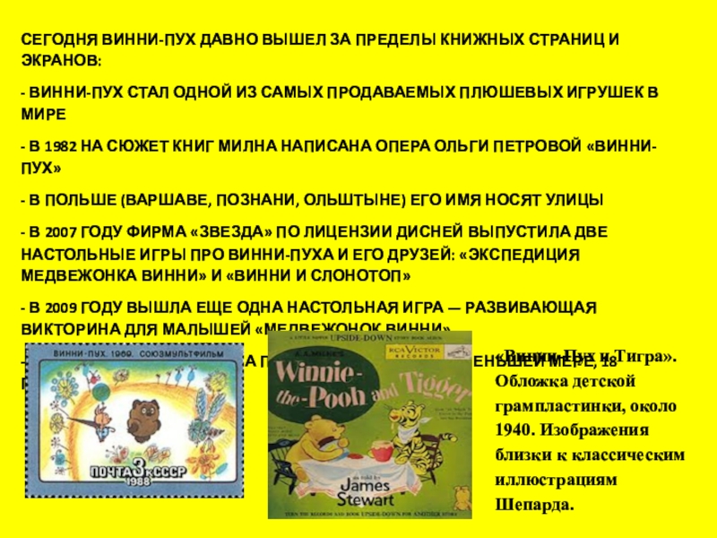 «Винни-Пух и Тигра». Обложка детской грампластинки, около 1940. Изображения близки к классическим иллюстрациям Шепарда.