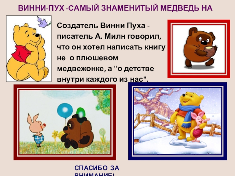Винни-Пух -самый знаменитый медведь на свете