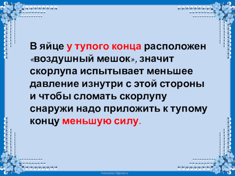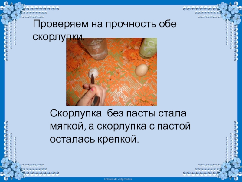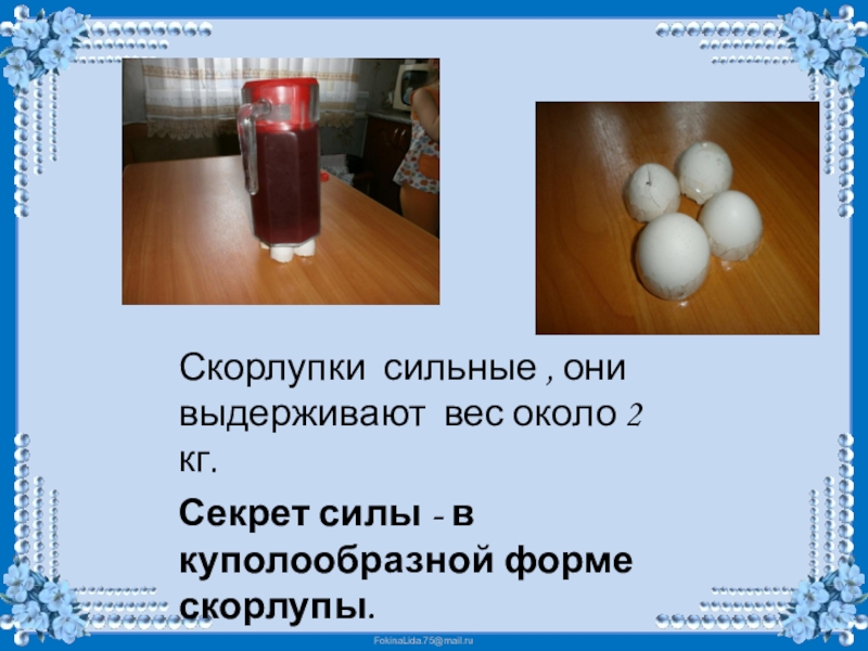 Скорлупа куриного яйца состоит на 90% из кальция, поэтому она такая прочная .