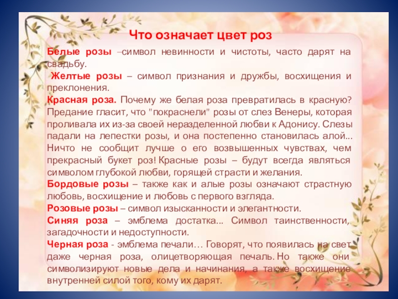 Слайд 15Что означает цвет роз