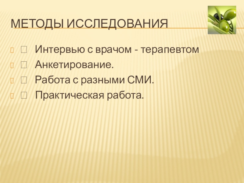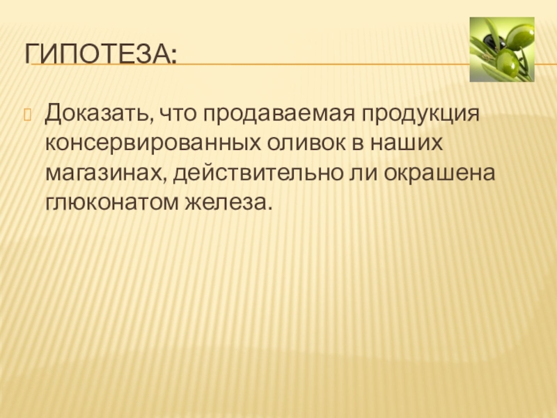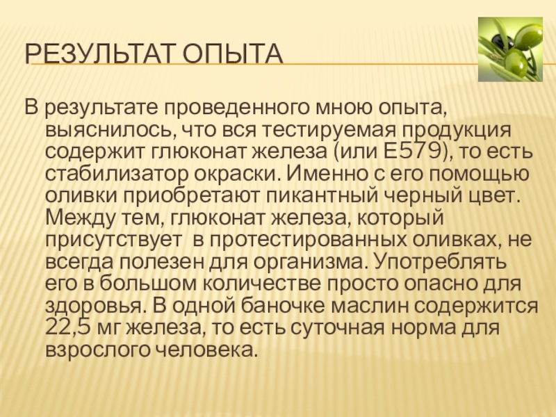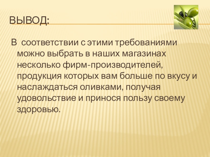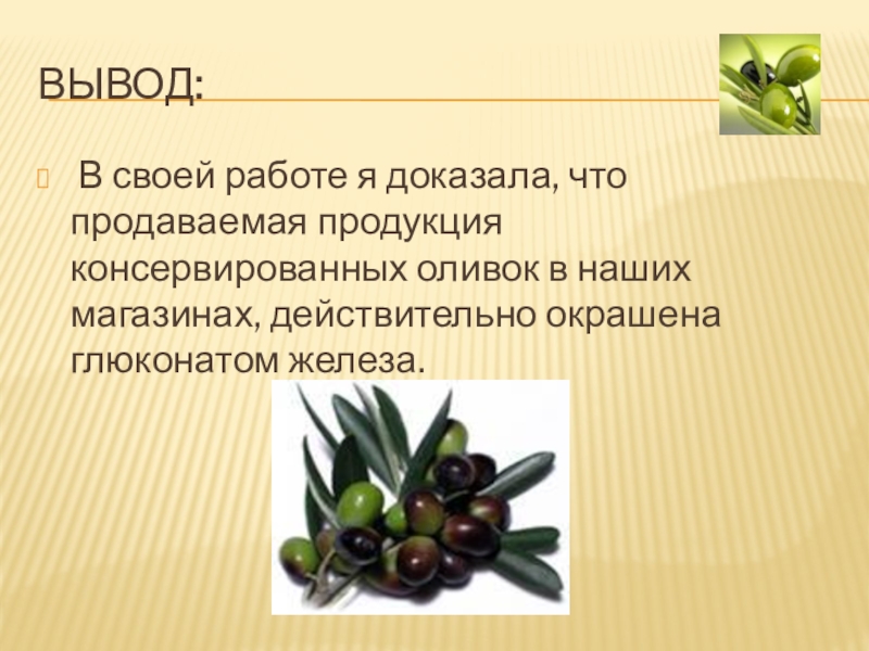 В своей работе я доказала, что продаваемая продукция консервированных оливок