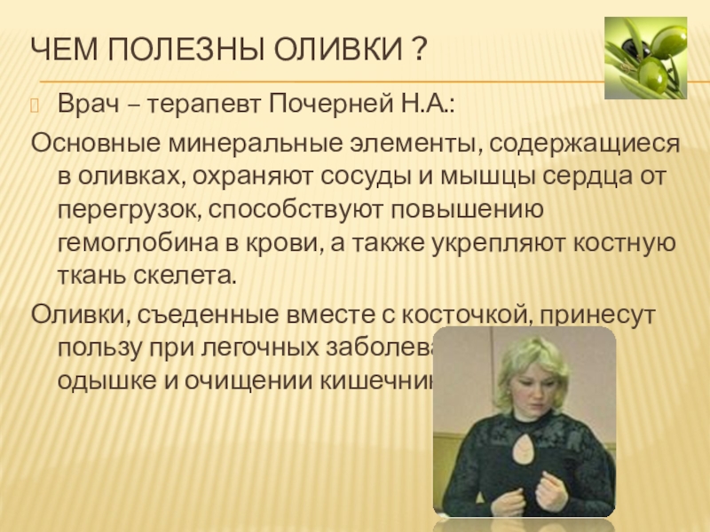 в оливках, охраняют сосуды и мышцы сердца от перегрузок, способствуют повышению гемоглобина в крови, а также укрепляют костную ткань скелета.