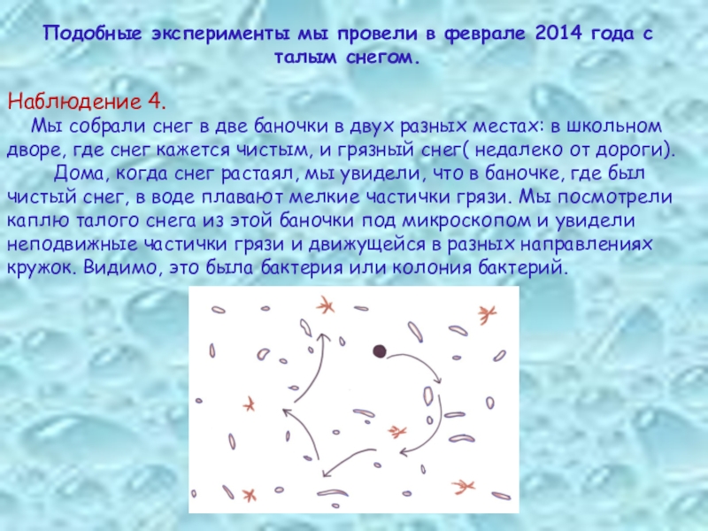 Подобные эксперименты мы провели в феврале 2014 года с талым снегом.