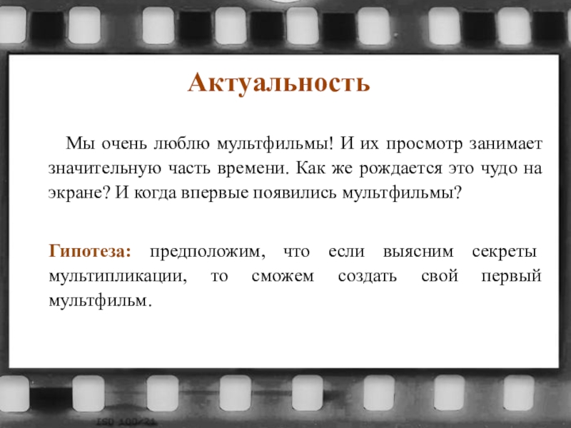 Гипотеза: предположим, что если выясним секреты мультипликации, то сможем создать свой первый мультфильм.