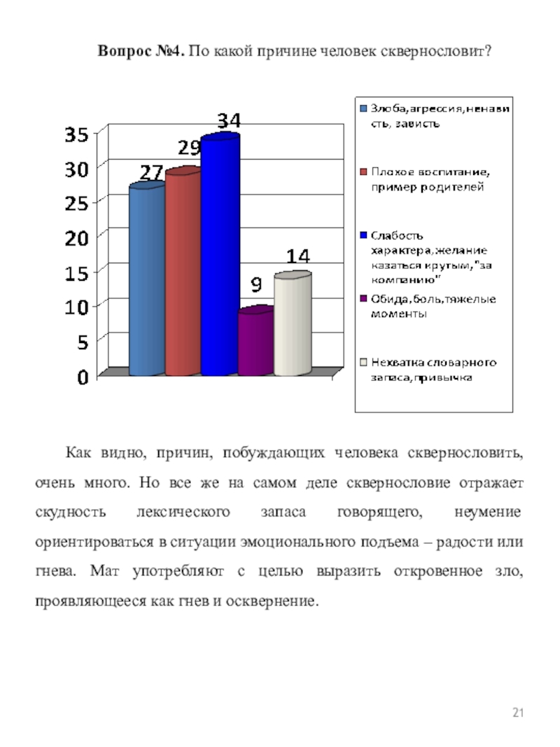 4. По Вашему мнению, по какой причине человек сквернословит?