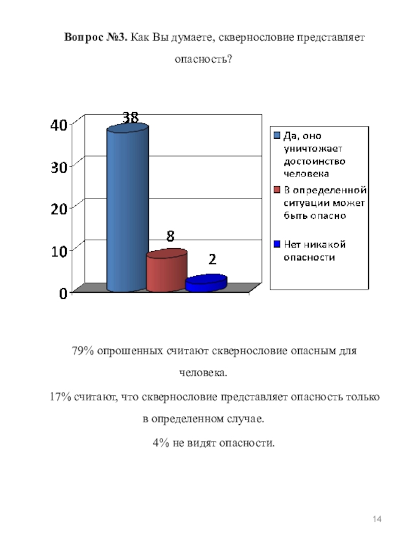 Слайд 15Вопрос №3. Как Вы думаете, сквернословие представляет опасность?