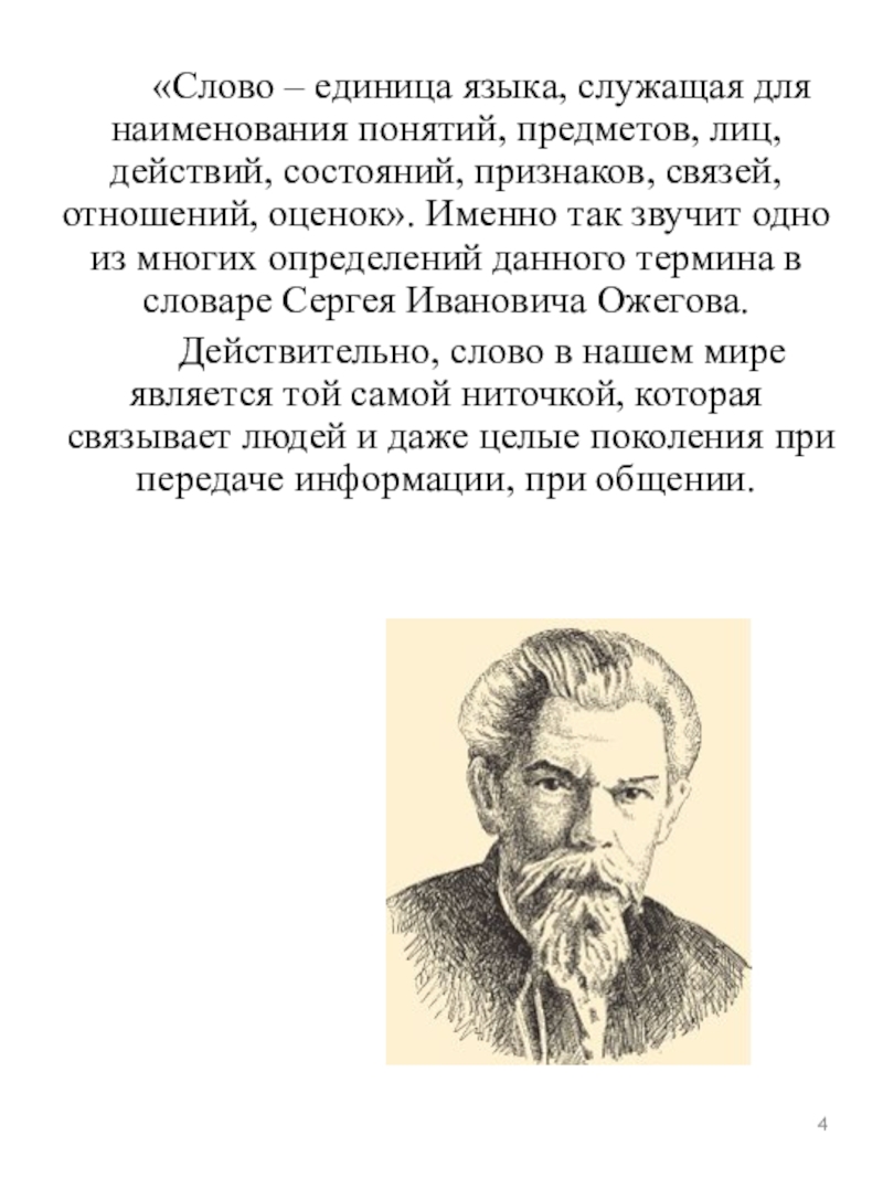 Слайд 5«Слово – единица языка, служащая для наименования понятий, предметов, лиц, действий,