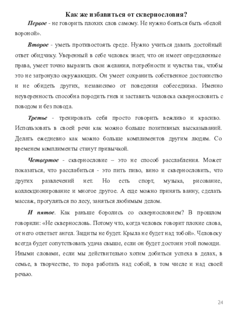 5. Нужно ли бороться со сквернословием? Если нужно, то каким образом?