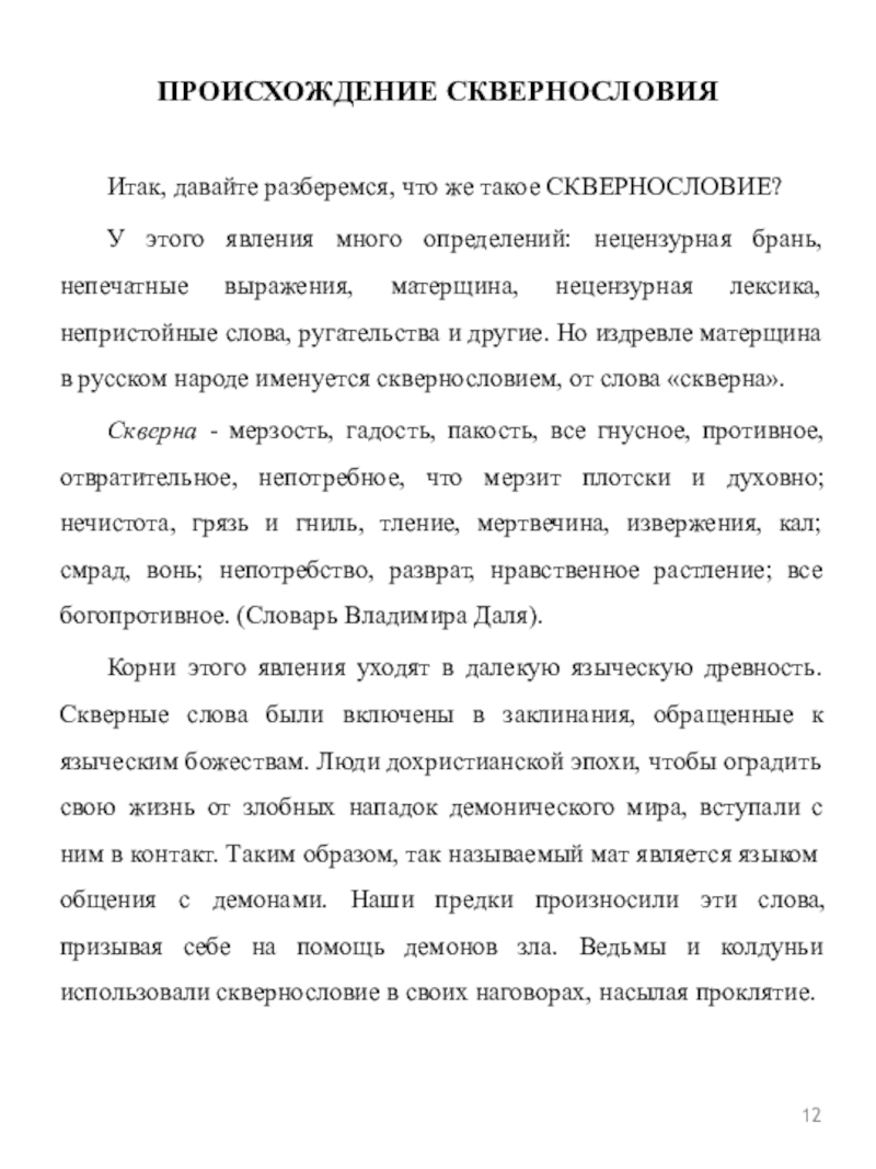 ПРОИСХОЖДЕНИЕ СКВЕРНОСЛОВИЯ