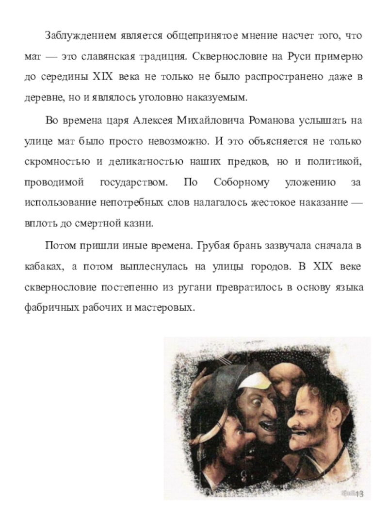 Потом пришли иные времена. Грубая брань зазвучала сначала в кабаках, а потом выплеснулась на улицы городов. В XIX веке сквернословие постепенно из ругани превратилось в основу языка фабричных рабочих и мастеровых.
