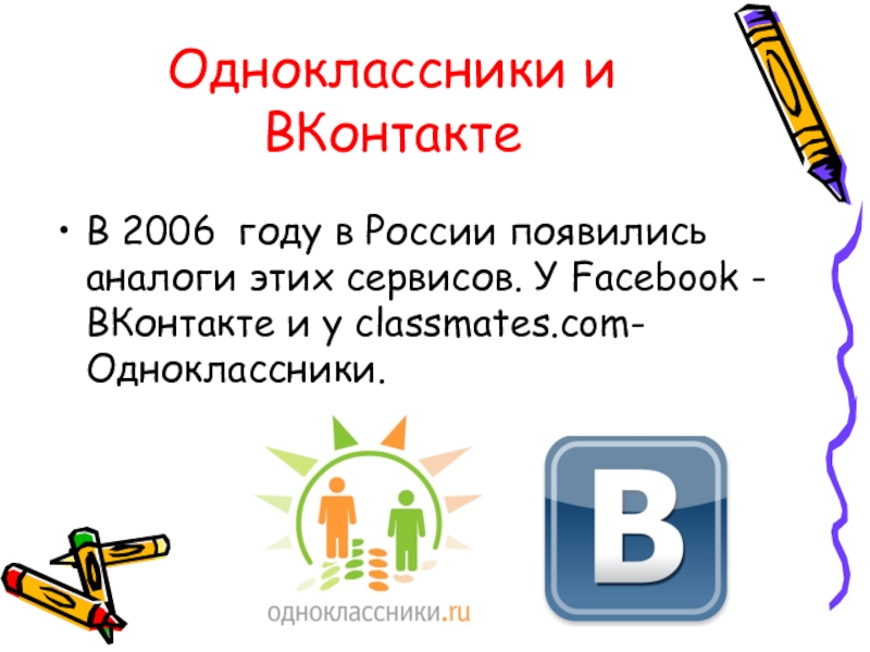 У Facebook - ВКонтакте и у classmates.com- Одноклассники.