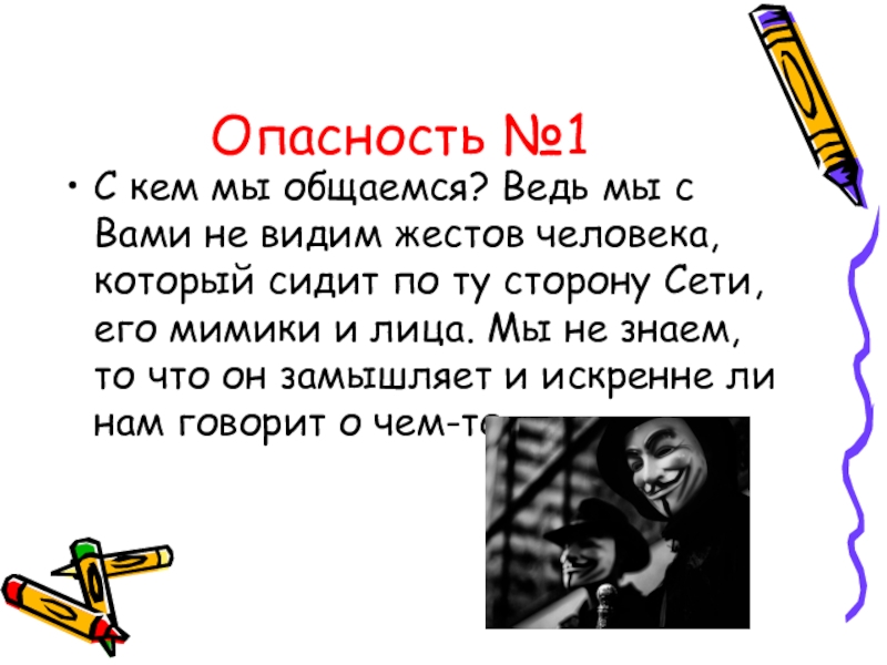 жестов человека, который сидит по ту сторону Сети, его мимики и лица. Мы не знаем, то что он замышляет и искренне ли нам говорит о чем-то