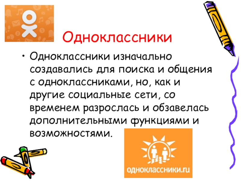 Одноклассники изначально создавались для поиска и общения с одноклассниками,
