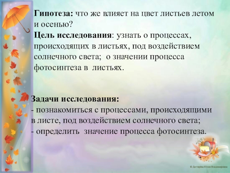 - познакомиться с процессами, происходящими в листе, под воздействием солнечного света;
