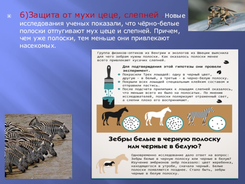 Ранее ученые предполагали, что во время передвижения полоски создают мерцающий эффект, который сбивает с толку охотящихся на зебр хищных животных.