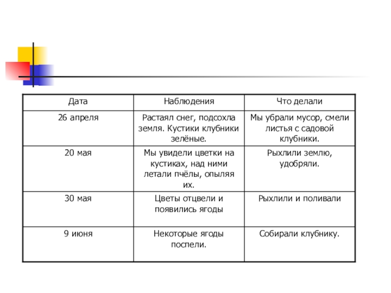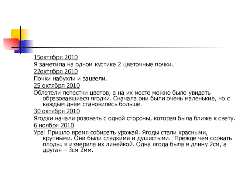 Облетели лепестки цветов, а на их месте можно было увидеть образовавшиеся ягодки. Сначала они были очень маленькие, но с каждым днём становились больше.