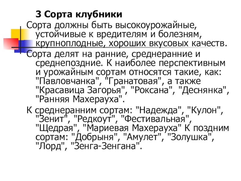 Сорта должны быть высокоурожайные, устойчивые к вредителям и болезням,