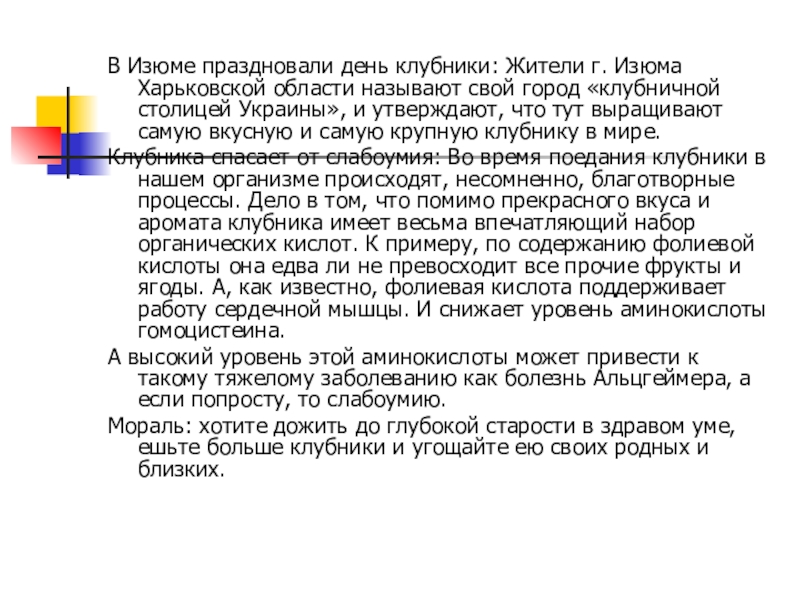 Мораль: хотите дожить до глубокой старости в здравом уме, ешьте больше клубники и угощайте ею своих родных и близких.