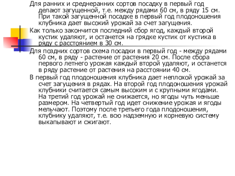 Слайд 13Для ранних и среднеранних сортов посадку в первый год делают загущенной,