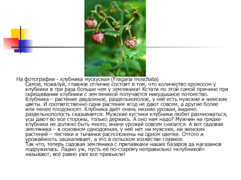 Слайд 7На фотографии - клубника мускусная (Fragaria moschata)
