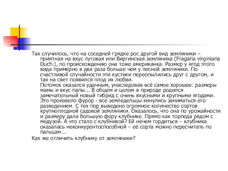Слайд 6Так случилось, что на соседней грядке рос другой вид земляники –