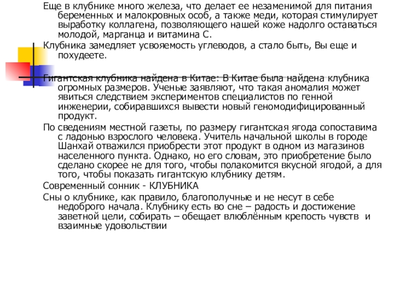 Слайд 22Еще в клубнике много железа, что делает ее незаменимой для питания