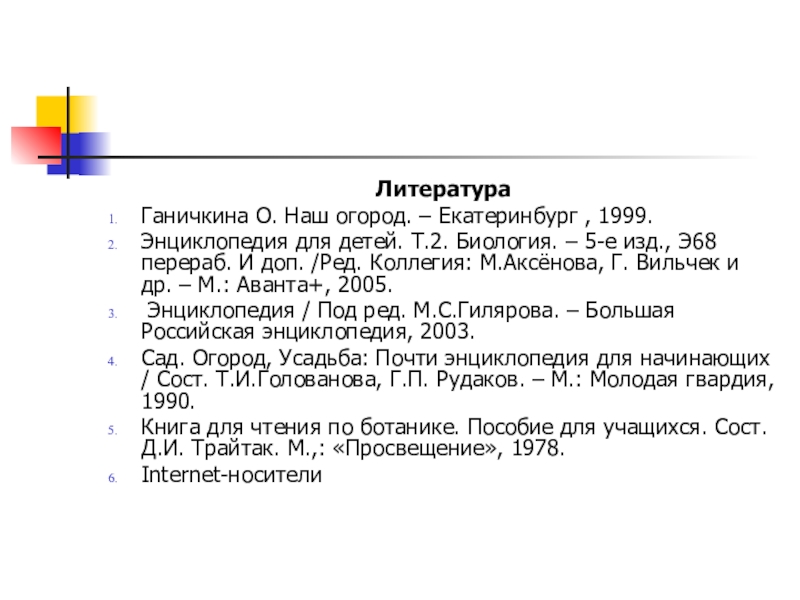 Ганичкина О. Наш огород. – Екатеринбург , 1999.