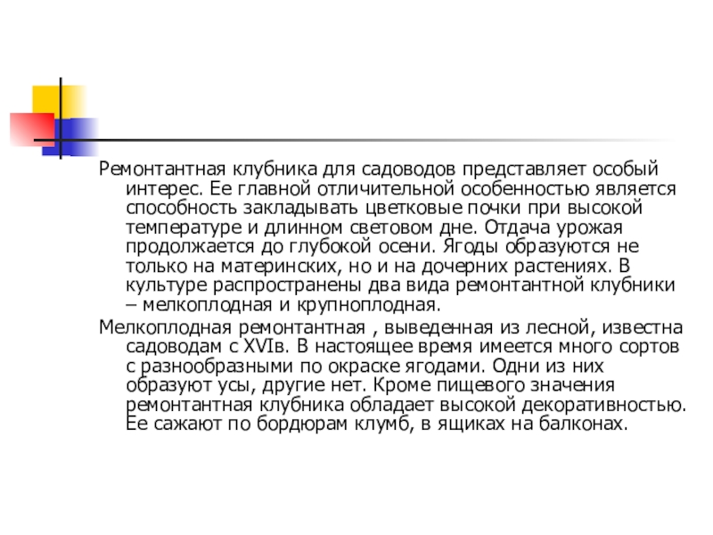 Слайд 16Ремонтантная клубника для садоводов представляет особый интерес. Ее главной отличительной особенностью