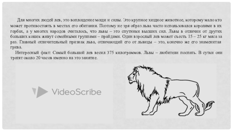 Слайд 10 Для многих людей лев, это воплощение мощи и силы.