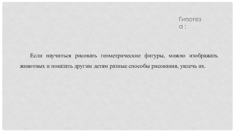 животных). Мои одноклассники рисовали геометрические фигуры и превращали их в животных. На вопрос “Умеете ли вы рисовать животных”, почти все ответили “Да”.