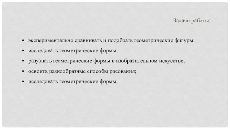 Цель моей работы изучить изобразительное искусство , как геометрические